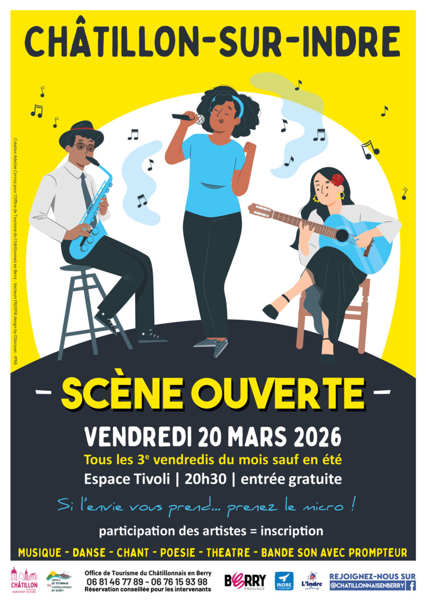 Tous les 3e vendredis de chaque mois (sauf en été), l’Office de Tourisme du Châtillonnais en Berry organise une scène ouverte !